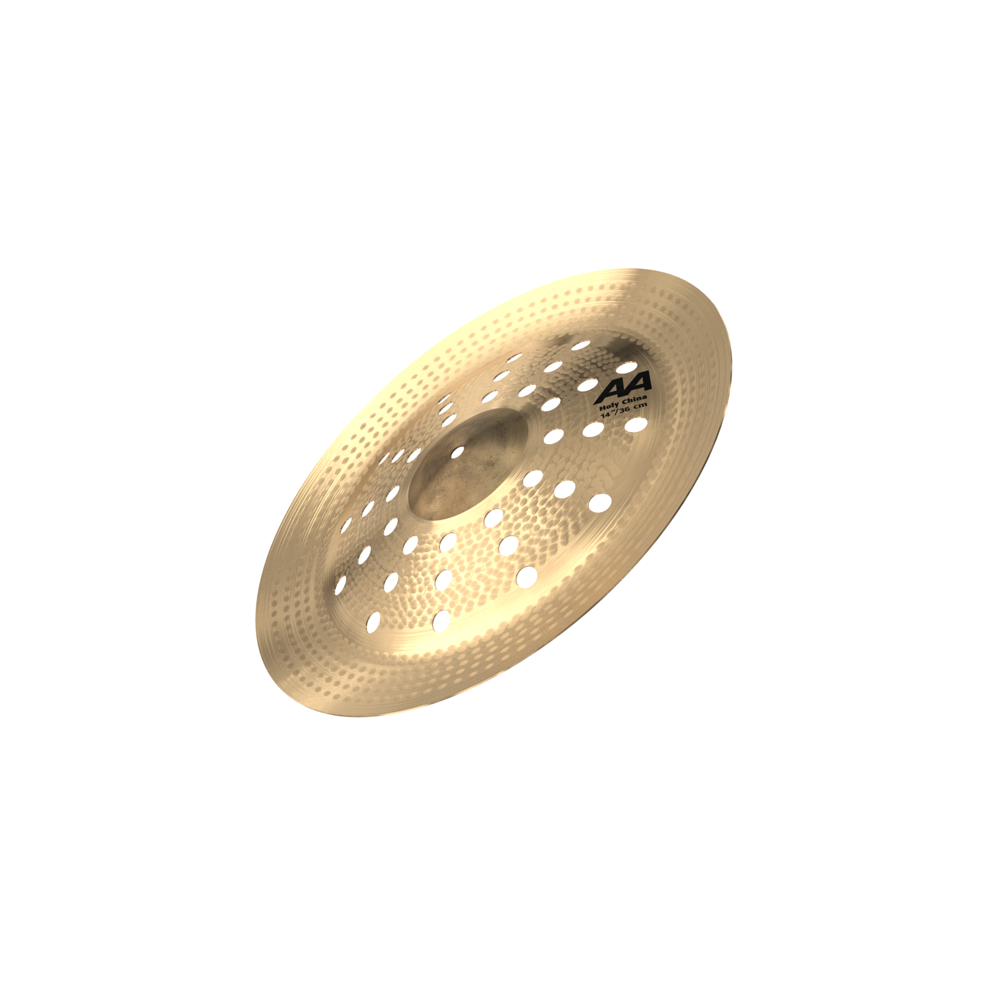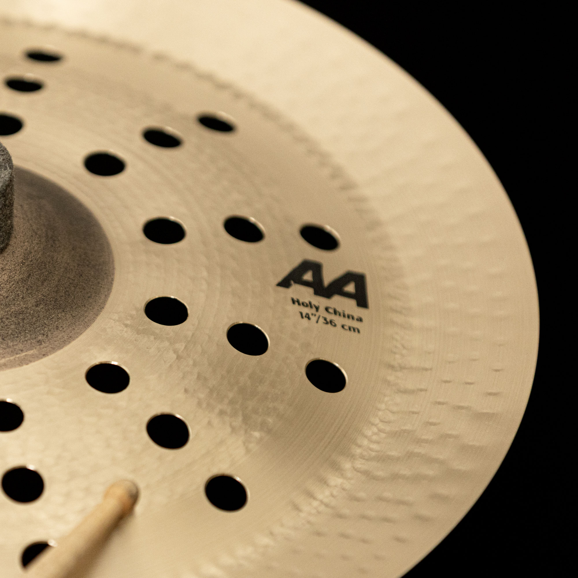 The 14" AA Holy China is a high-profile, small-format china featuring a raw bell and 12 sets of triple holes. This design delivers a loud, cutting response with a very bright tone, sharp attack, and short sustain. Despite its compact size, it offers strong projection and fast accents ideal for aggressive punctuation.