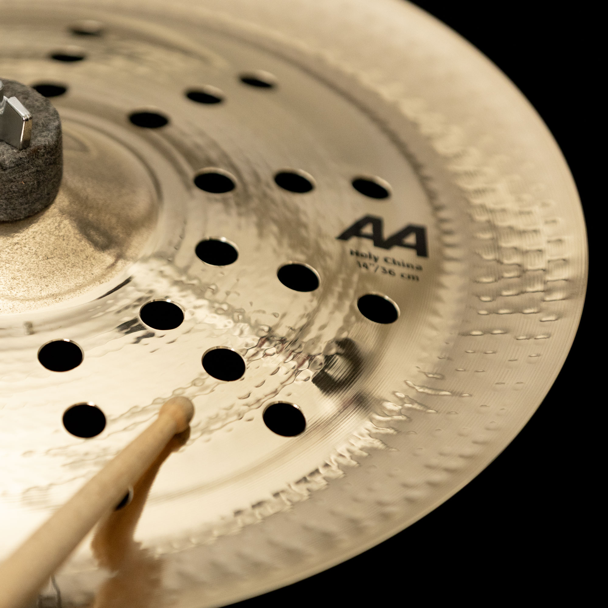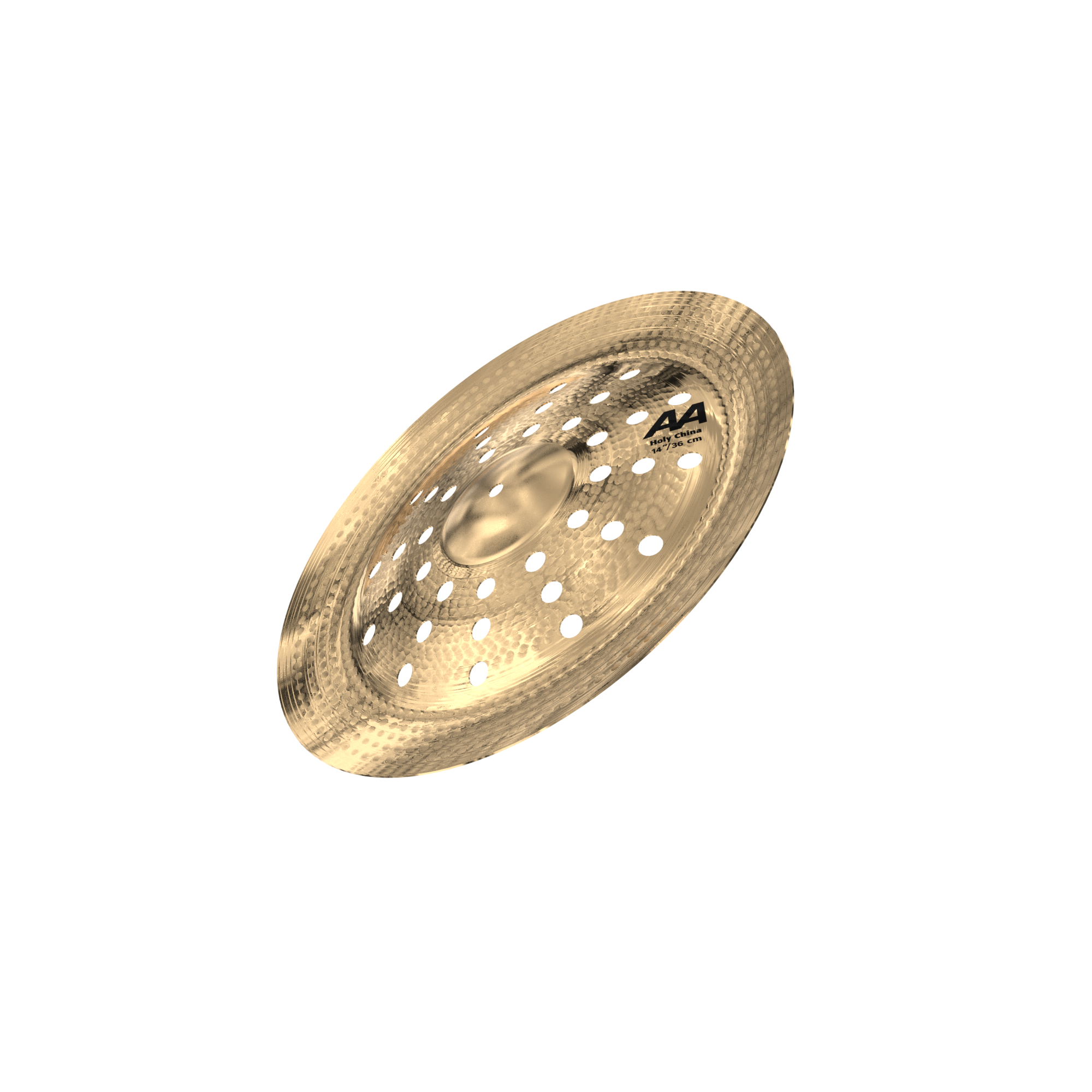 The 14" AA Holy China is a high-profile, small-format china featuring a raw bell and 12 sets of triple holes. This design delivers a loud, cutting response with a very bright tone, sharp attack, and short sustain. Despite its compact size, it offers strong projection and fast accents ideal for aggressive punctuation.